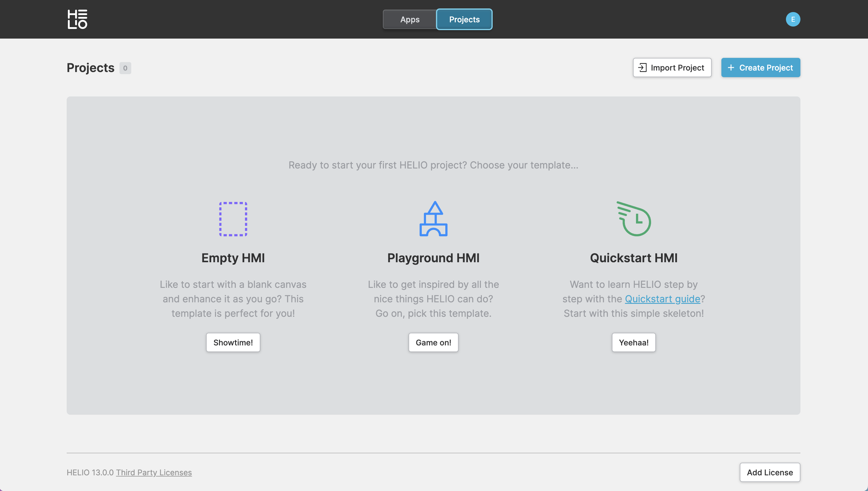 Once you’ve downloaded HELIO, it's time to create your first project. To get started more quickly, we will use an existing template. Let's begin…