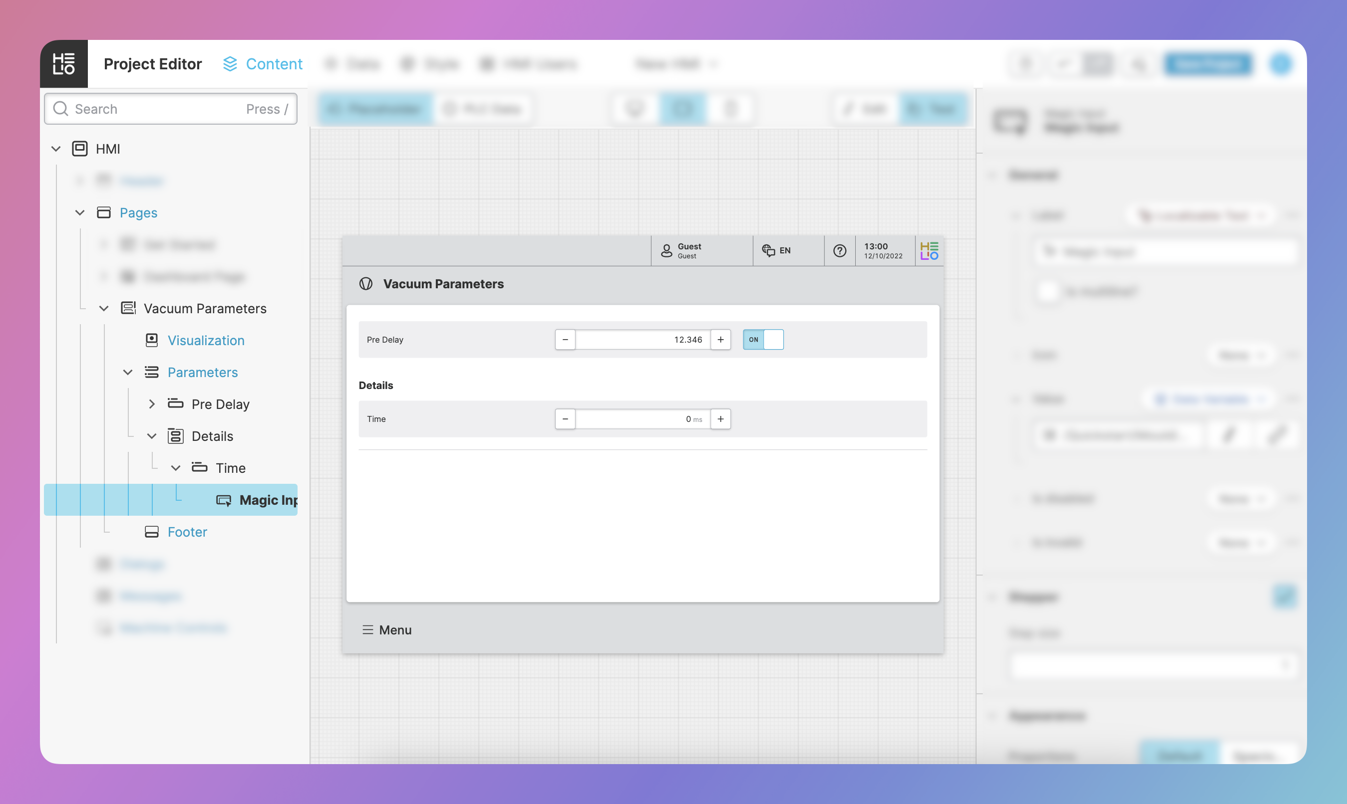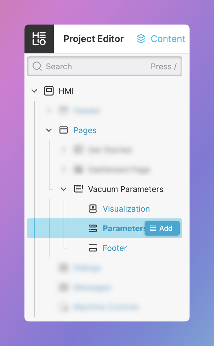 Great work so far! You have created your first Dashboard page. Now let’s keep working on your HMI. In this step we will be adding a Parameter Page where you will be able to view and edit your HMI’s parameters.