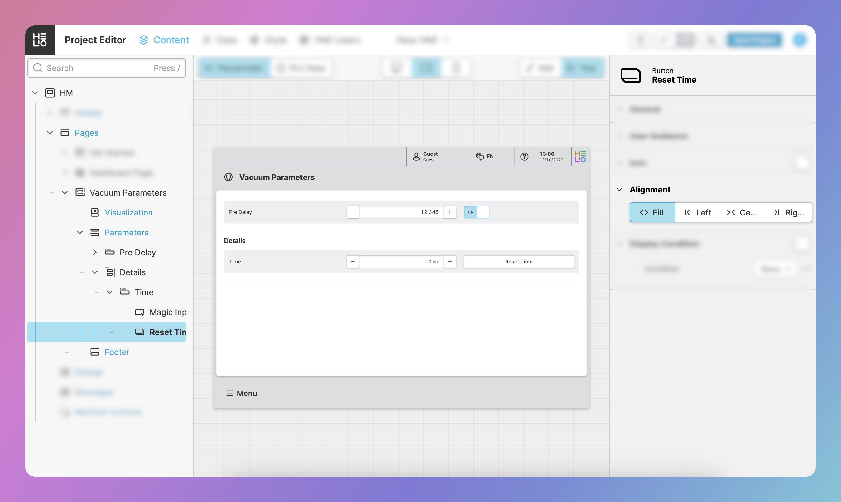 - Activate Test Mode above the HMI Preview Panel and click the “Reset Time” button!