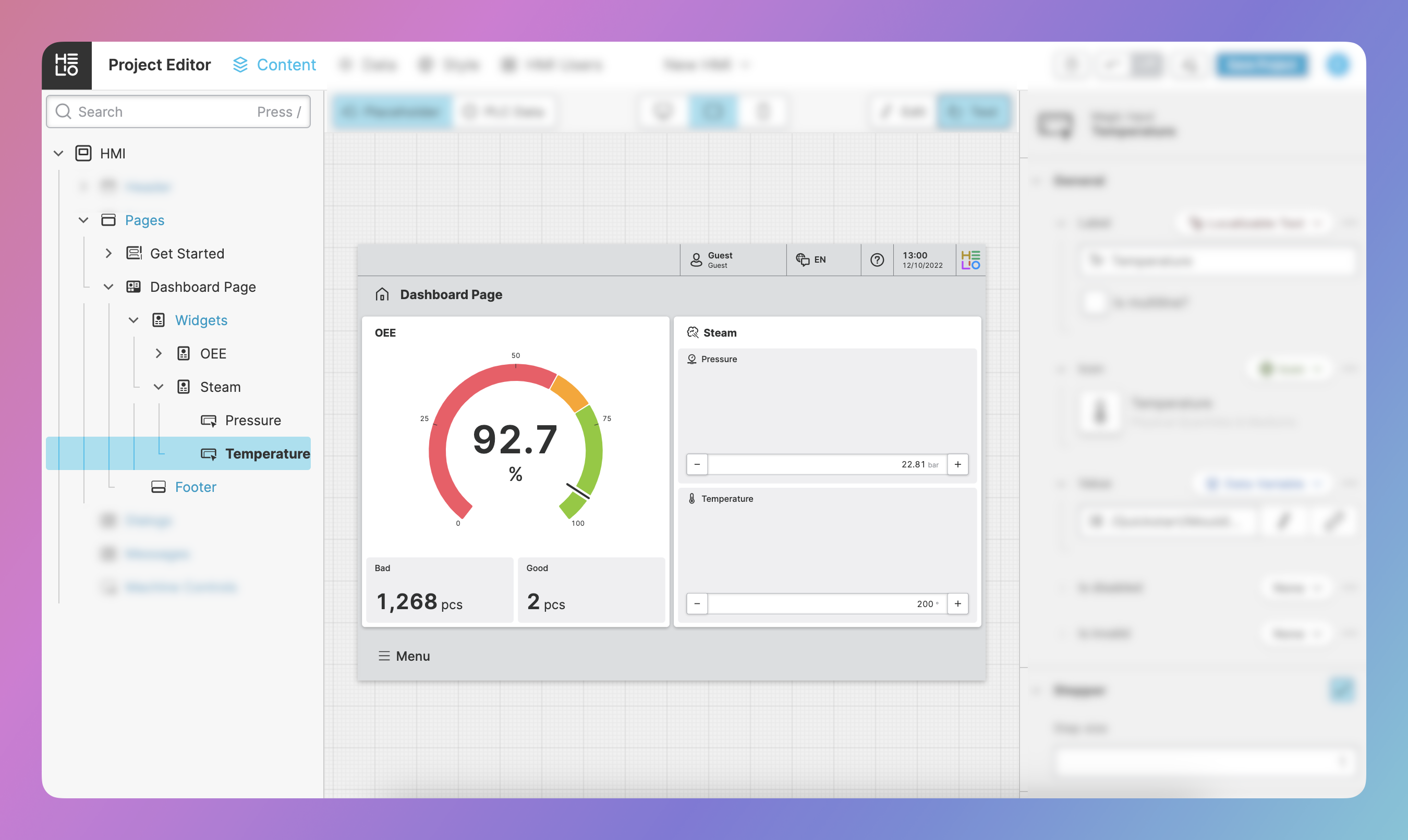 Empty Widget. Rename it to "OEE" in the content tree, as we would like to add a widget that displays the quality of our production.