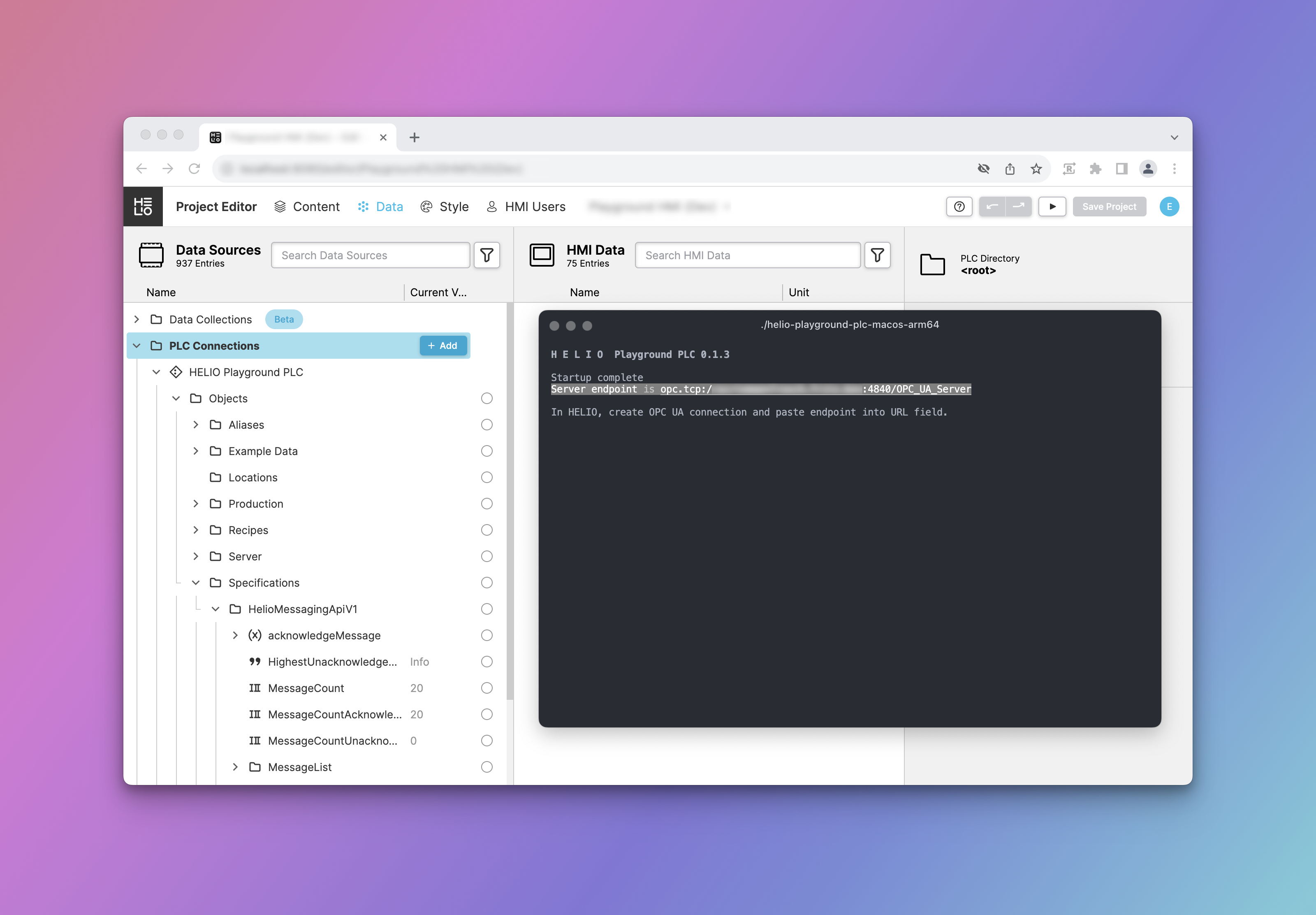 Just like HELIO the Playground PLC is also a simple executable that you can execute on your development machine.