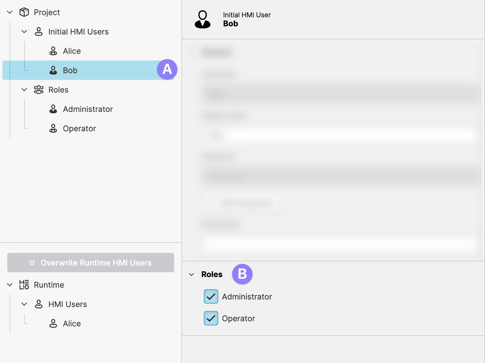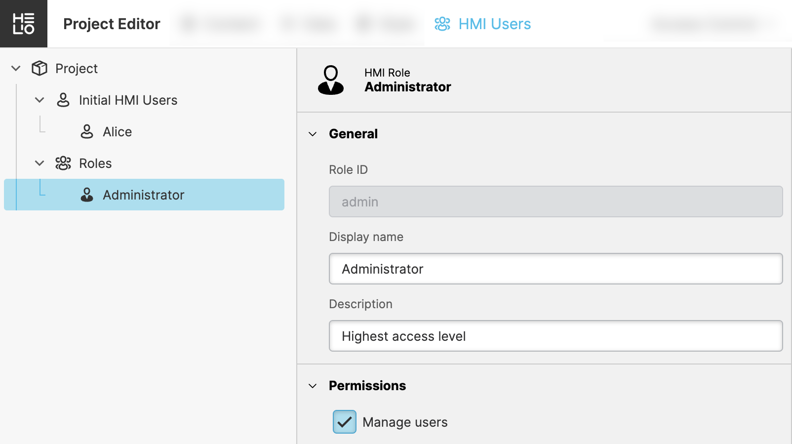 - Navigate to the HMI Users View of the Project Editor