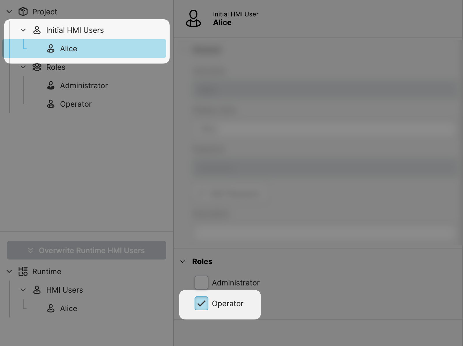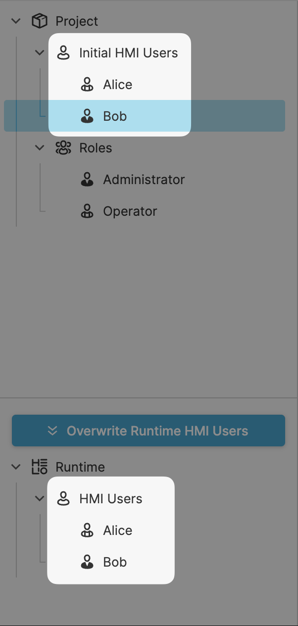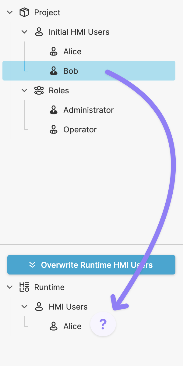 Fortunately, this isn't a significant issue. Simply click Overwrite Runtime HMI Users and confirm the resulting dialog to reset the