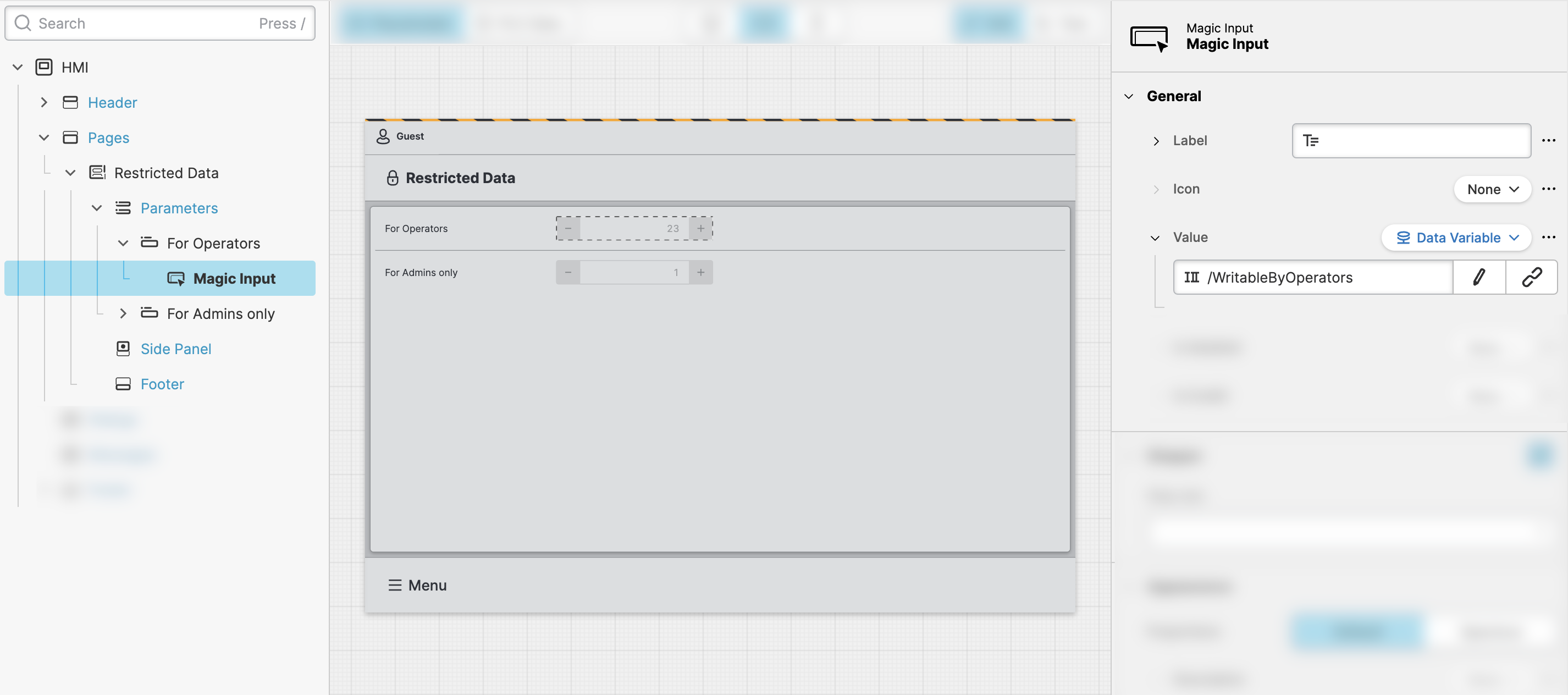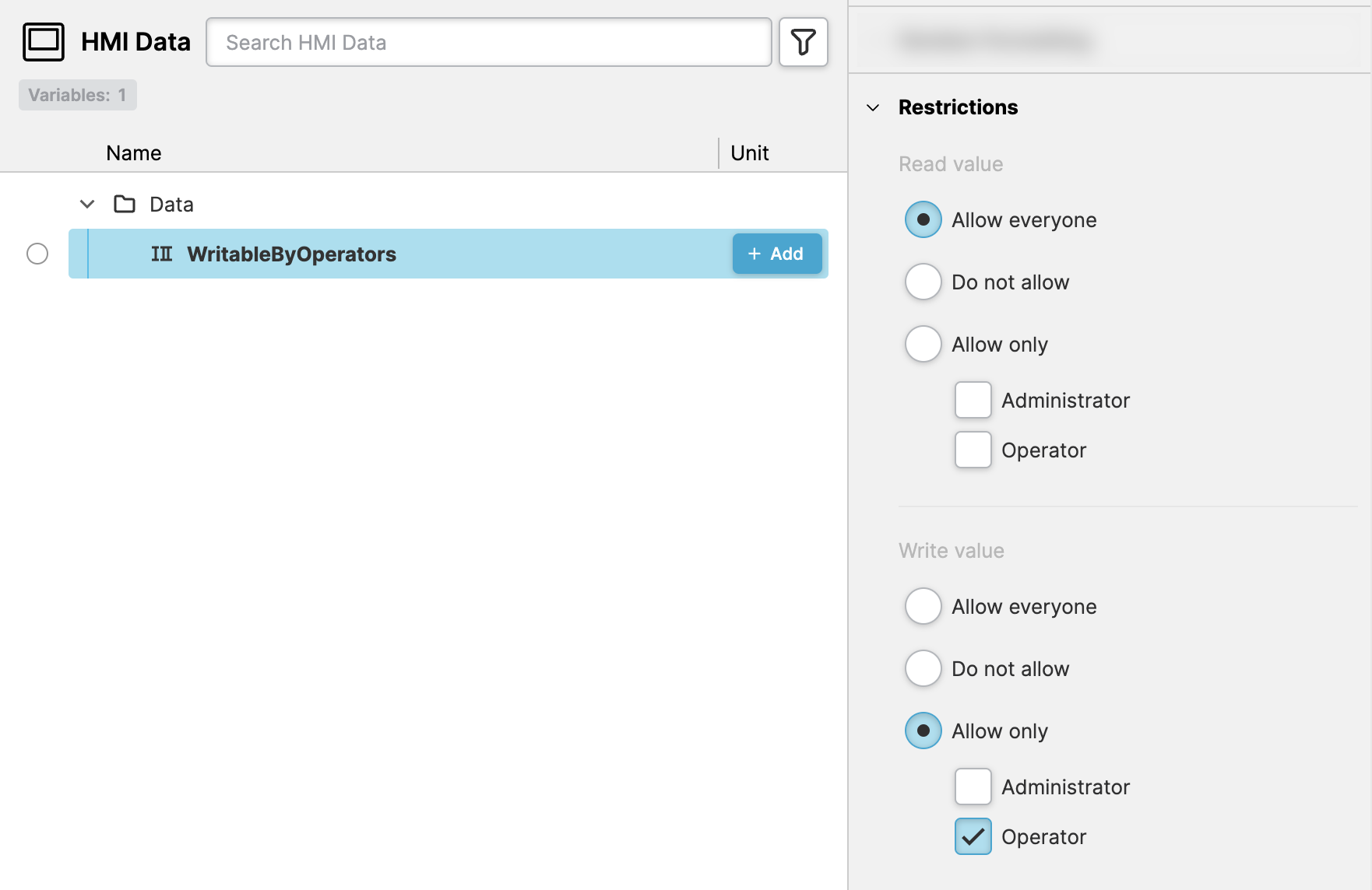 Open Data View and define a variable called WritableByOperators.