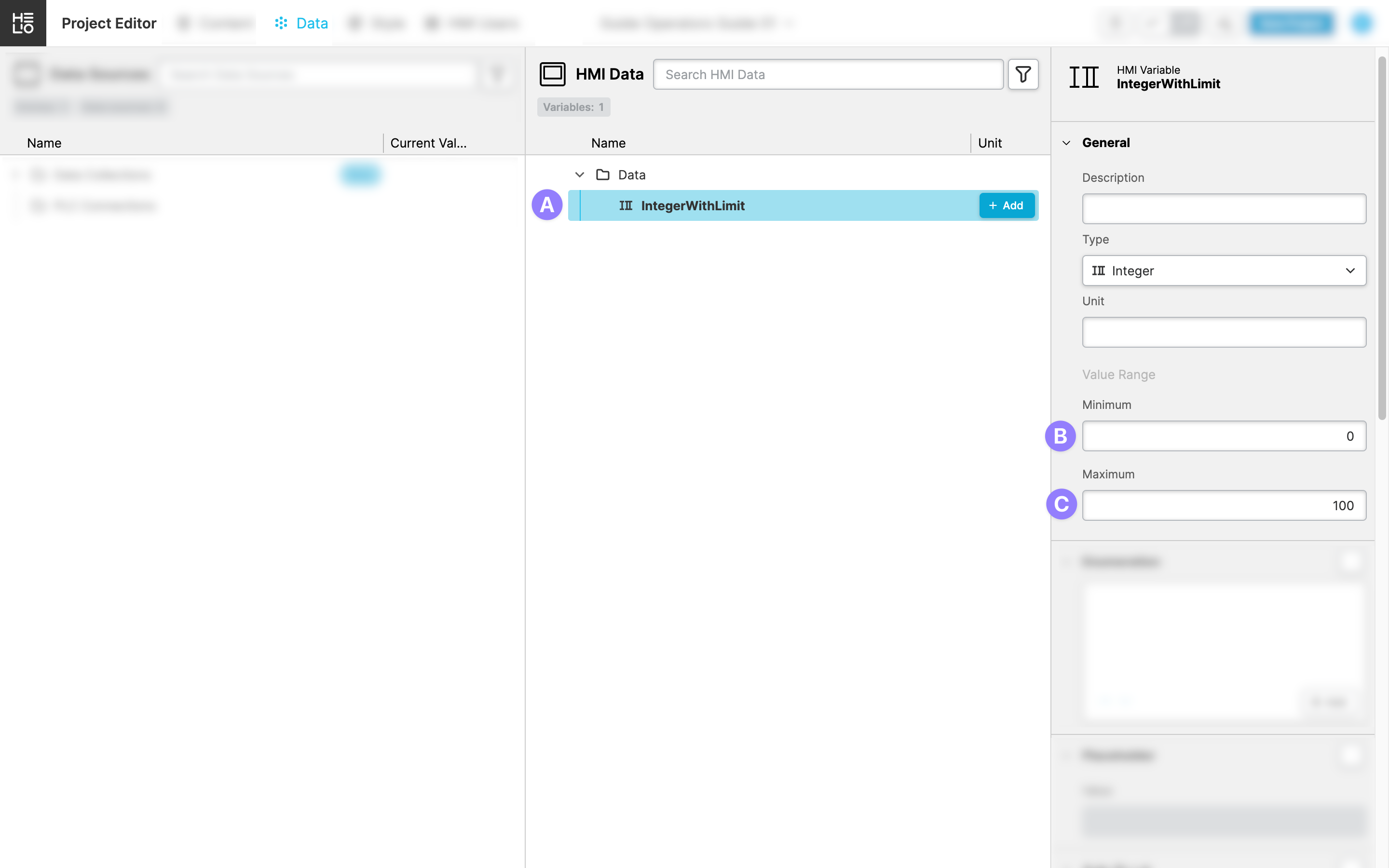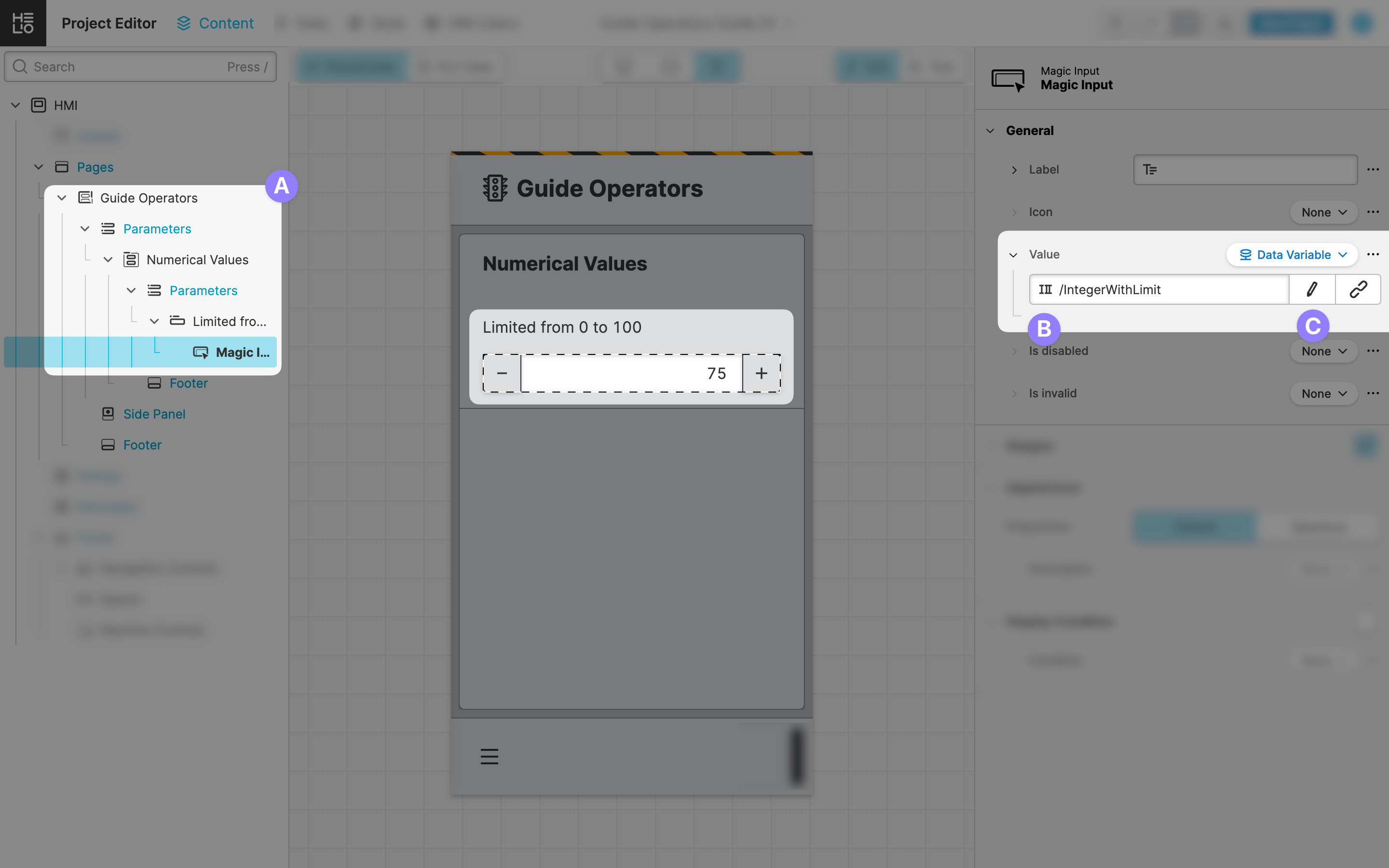 Numerical Input is crucial for each machine. Operators need to be able to use steppers but also the keyboard to input numerical data manually. In both cases defining limits allows HELIO to provide guardrails for operators.