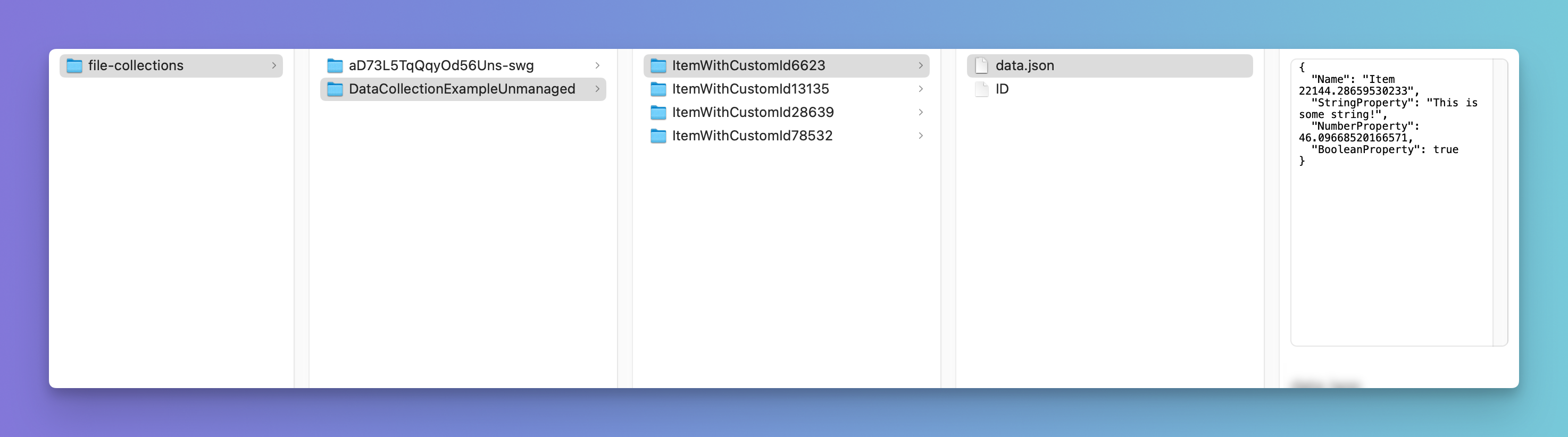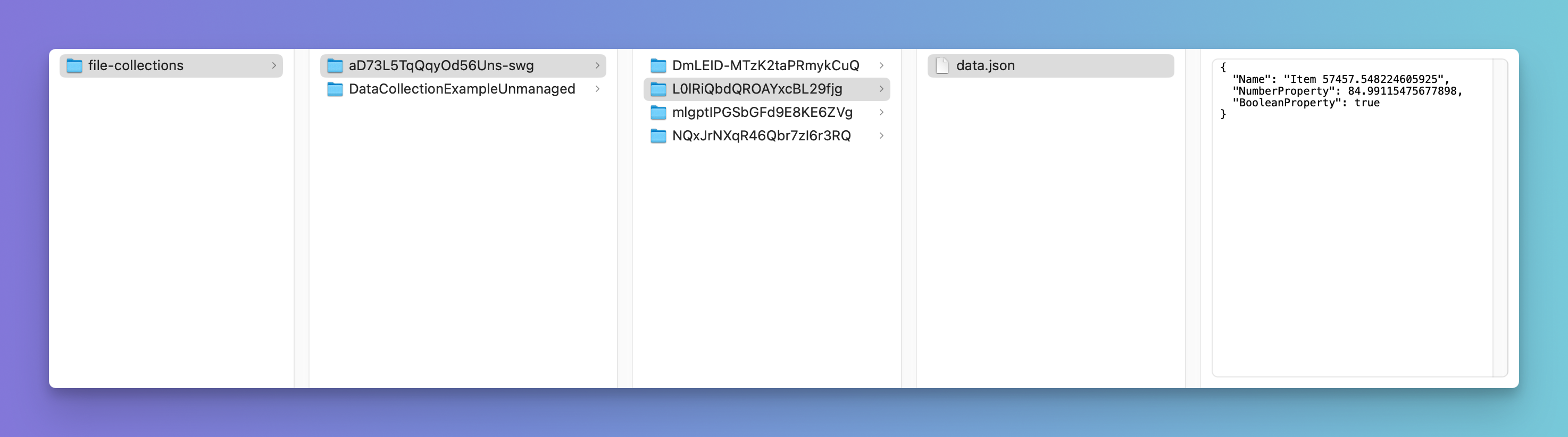 The folder aD73L5TqQqyOd56Uns-swg is an example of a Managed Collection.