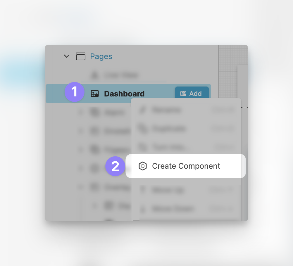 You create a Component from an existing element. For example if you would like turn a Dashboard Page into a component: