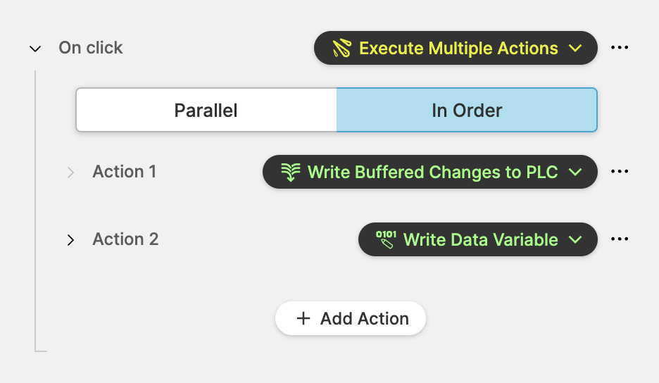 First we’re writing state to our PLC using the Write Data Variable Action.