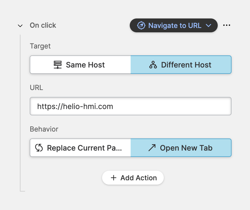 This action enables operators to navigate away from the current Page to a different URL.