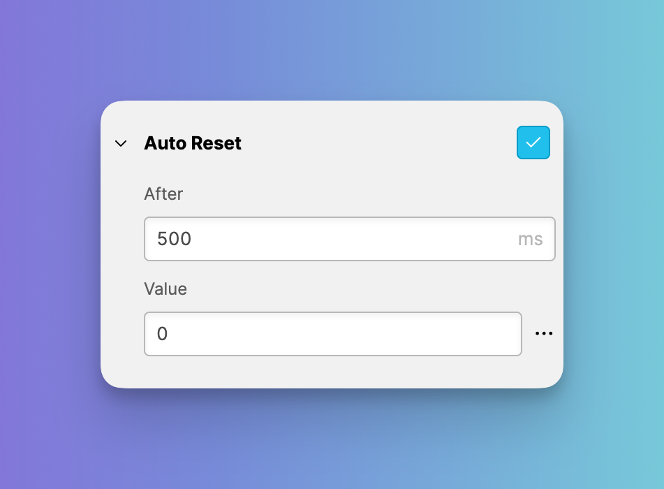 To reset a variable after it has been written to, you can specify a duration in milliseconds using the After option. HELIO will wait for this duration before resetting the variable to the specified Value.