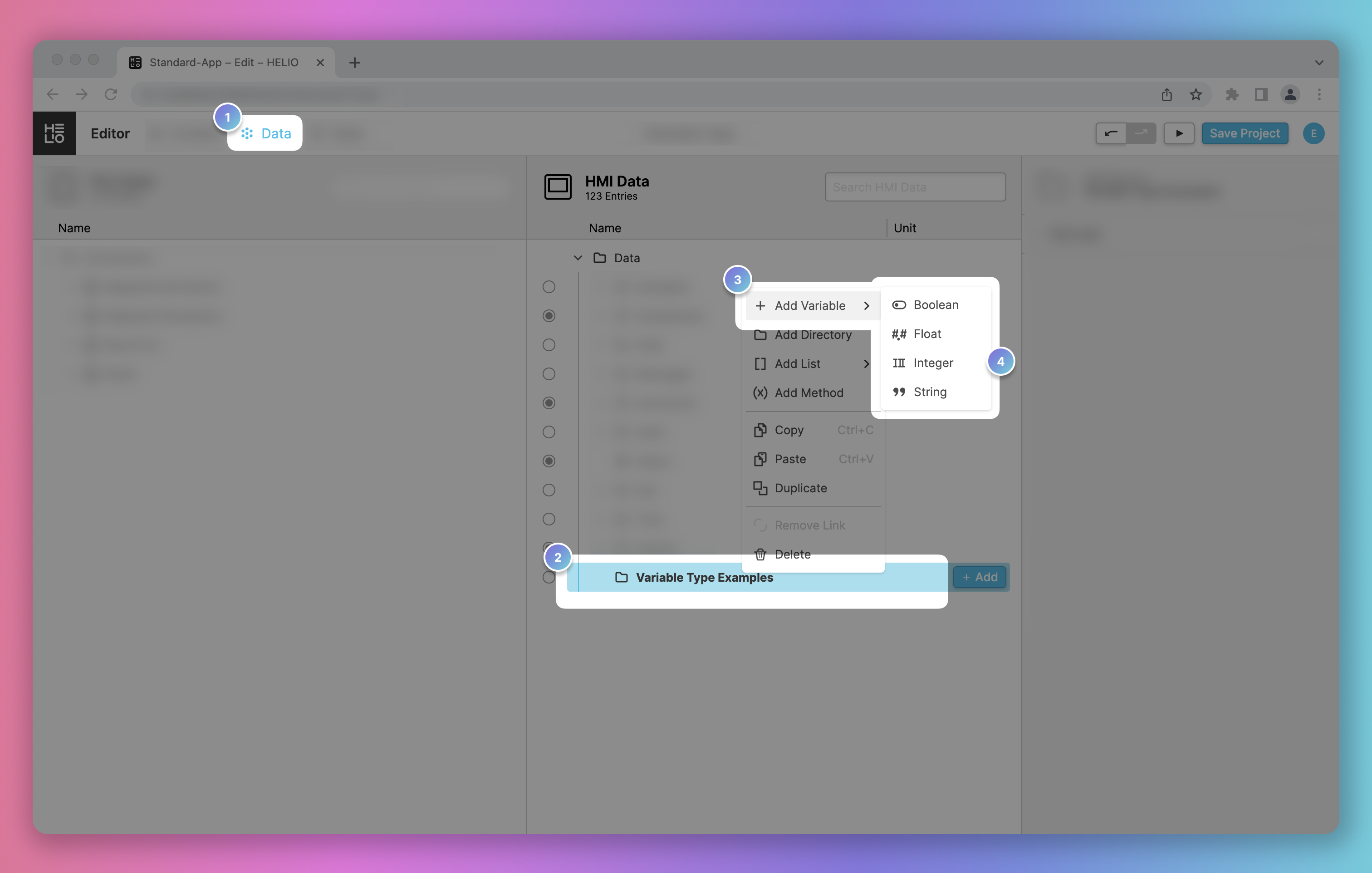 Right-click the Data or any other folder in your HMI Data View.