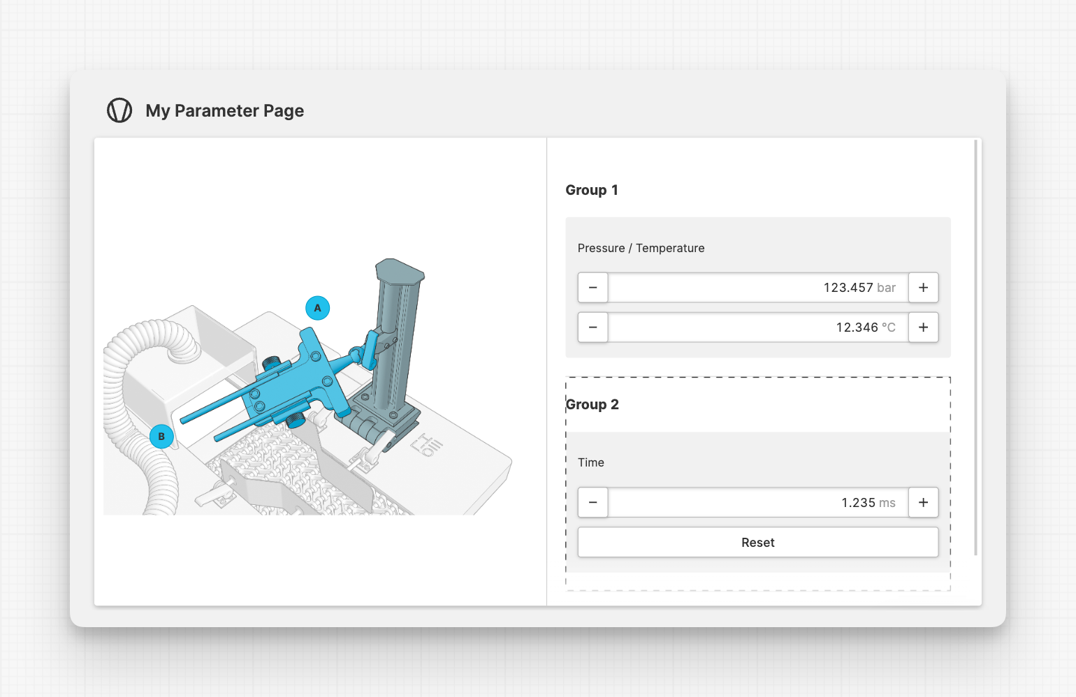 To visually group related parameters, you can use the Parameter Group element. Add it to the Parameters slot of your page.