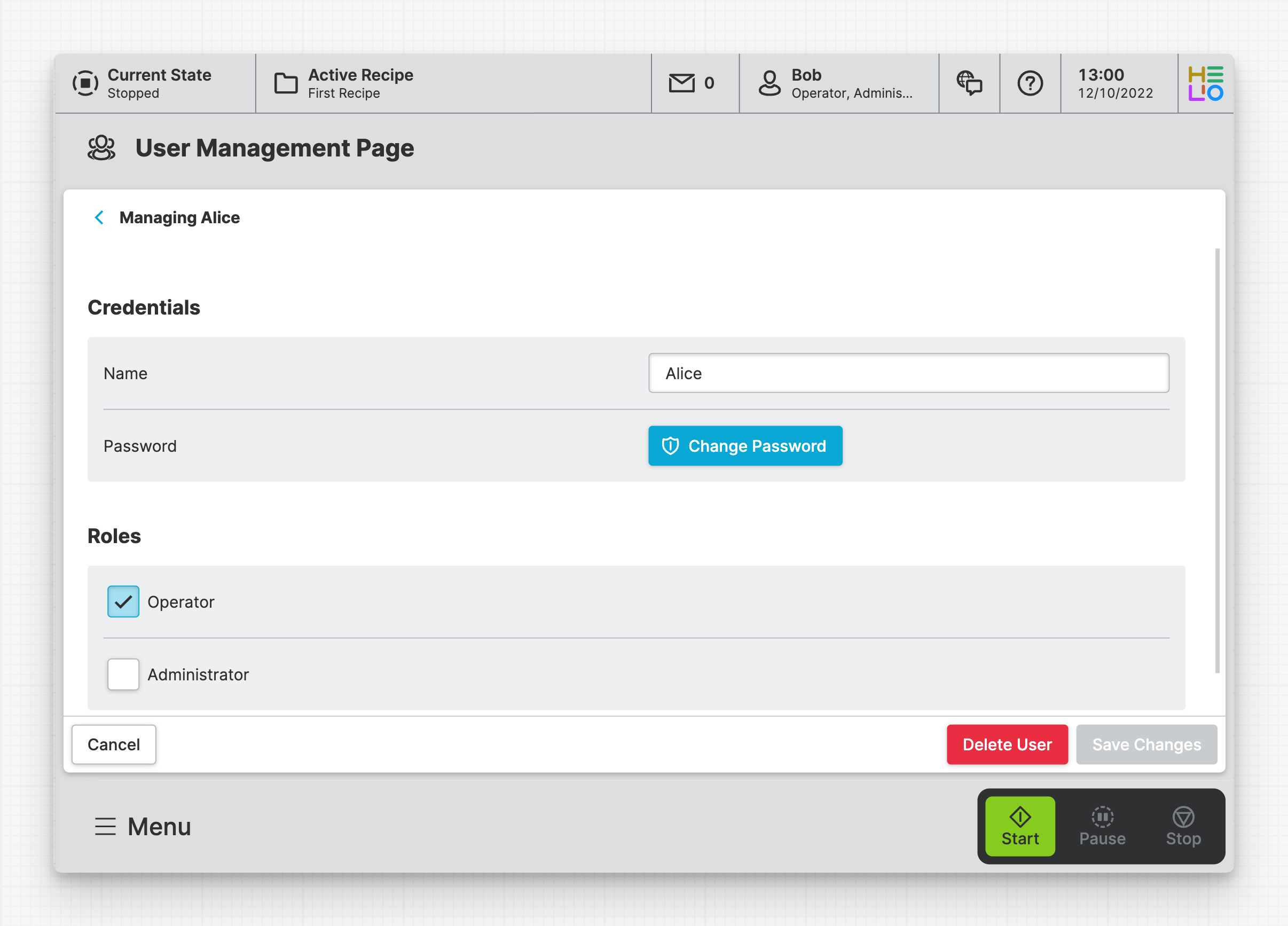 Purpose: Allow operators and administrators to modify and manage their own user base within their facility.