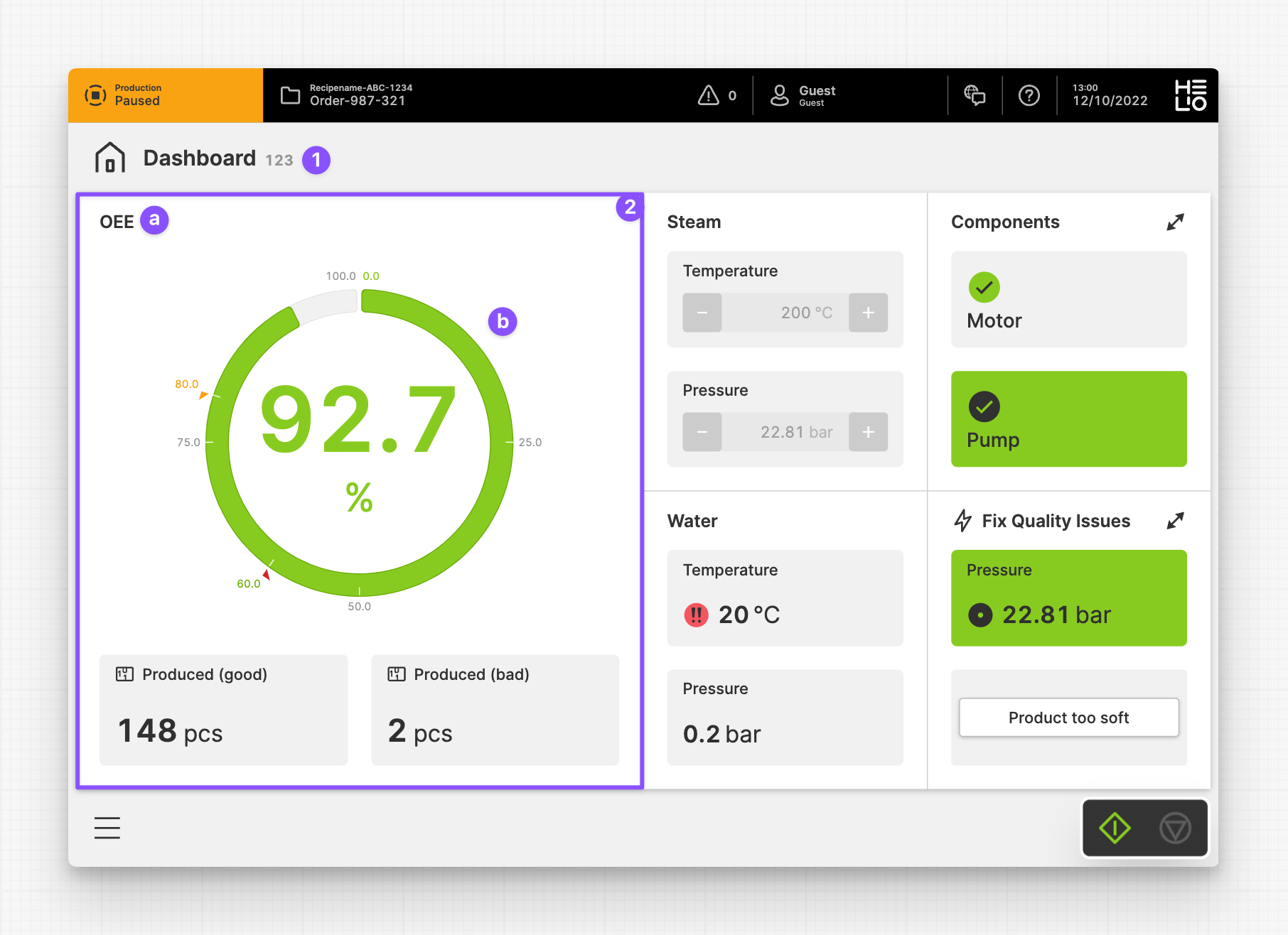 - Dashboards provide vital information in a structured and easy-to-understand format. This layout helps operators rapidly recognize issues and take the required steps to maximize machine performance and minimize downtime.