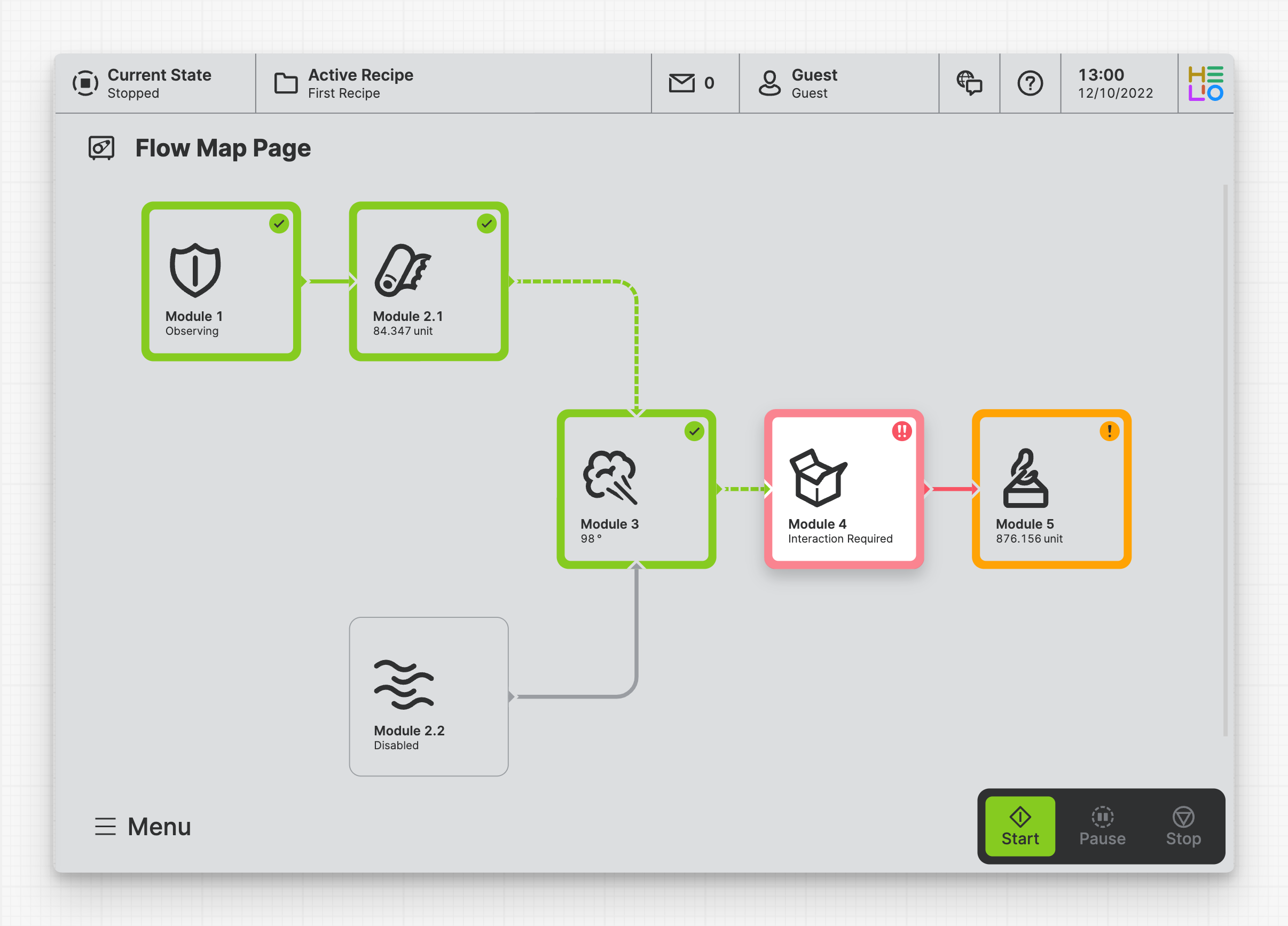 Purpose: To give operators an orientation and overview by presenting visual maps that illustrate the flows within a machine or process.