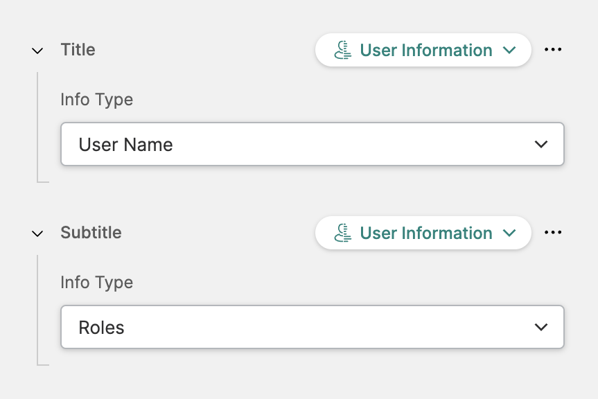 ReferenceDynamic PropertiesAuthorizationUser InformationOn this pageUser Information (Dynamic Property) About Lets you access and display information about the current user. Related ElementsHeader Cell