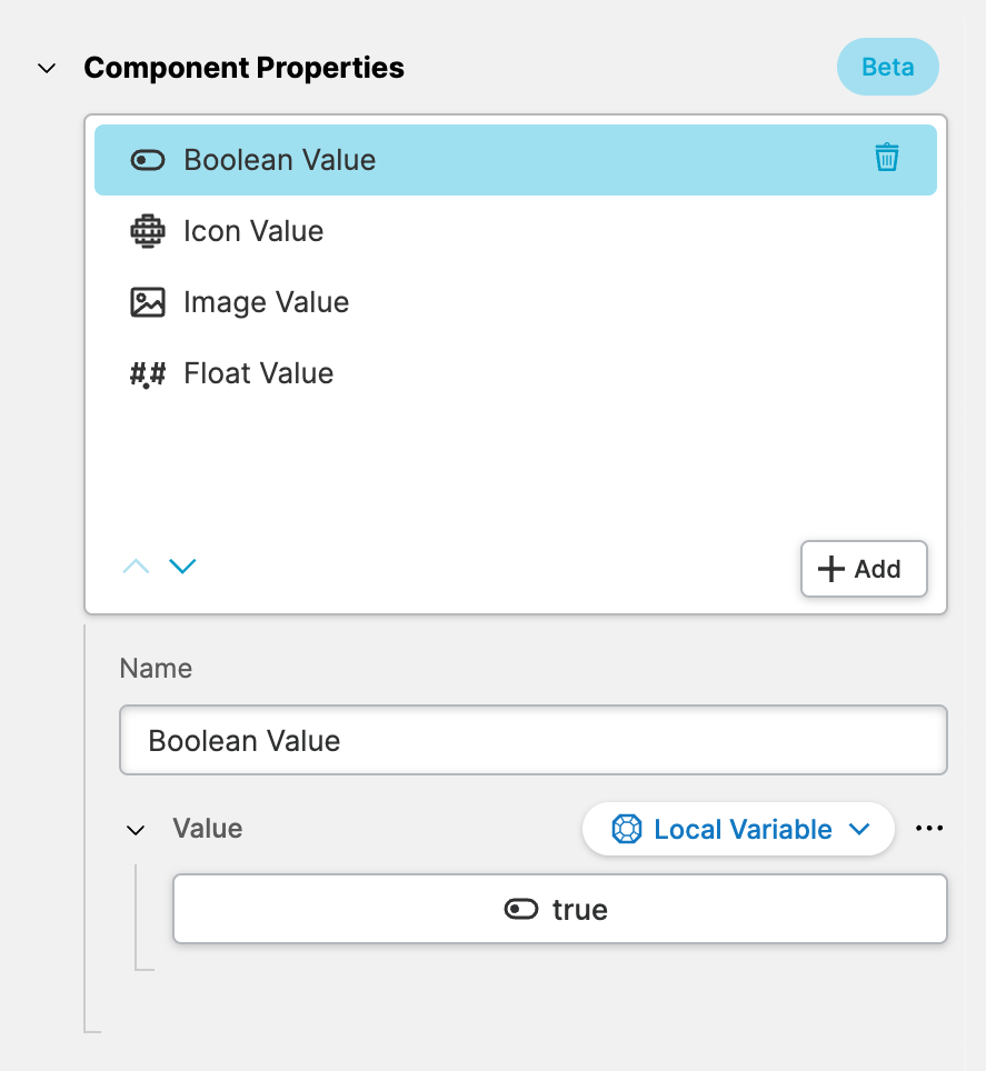 You edit the type and properties of this variable by clicking the button of this property which opens a Quick Edit Dialog like this one.