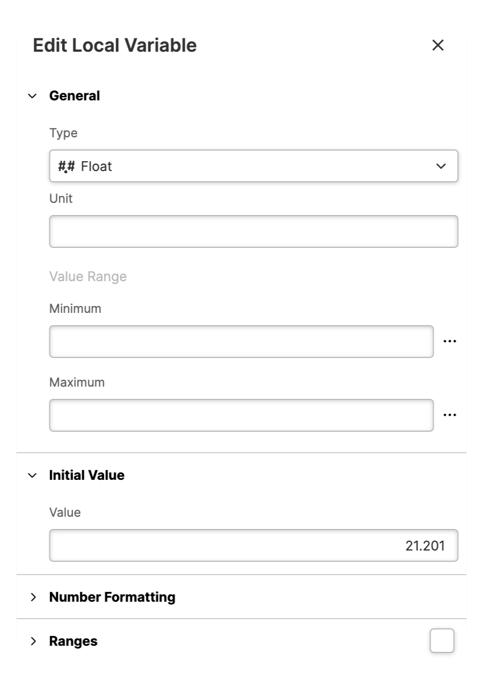 The example shows how editing a Float variable looks like.