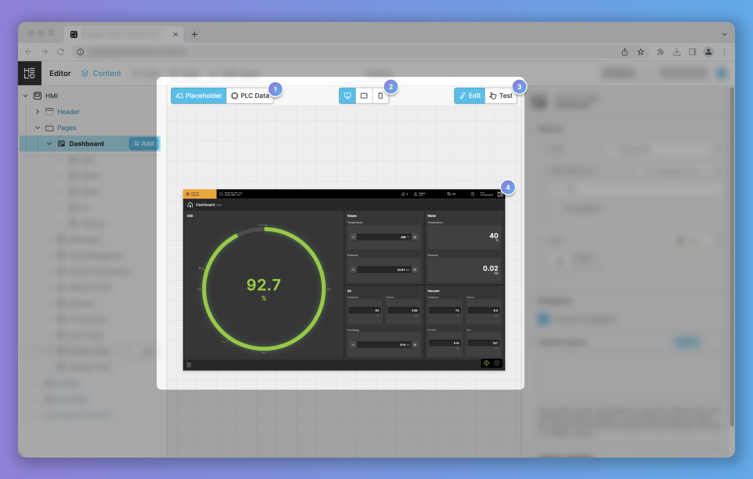 When Test Mode is active, you can interact with your HMI as an operator would.