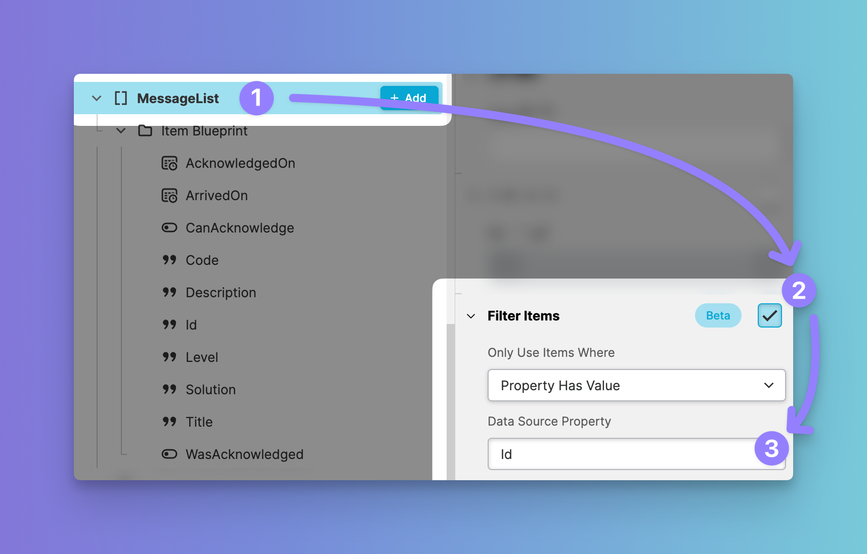 the MessageList example on the right, the 'Id' attribute is used to flag